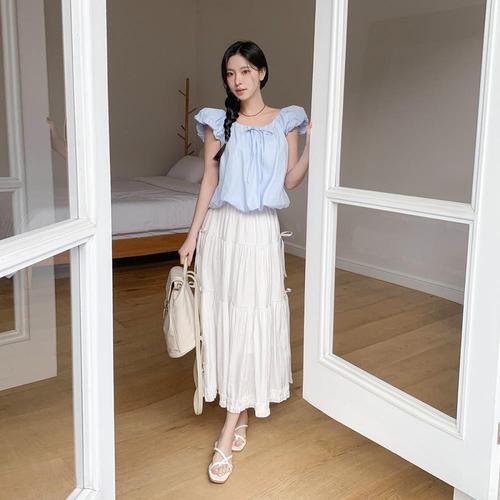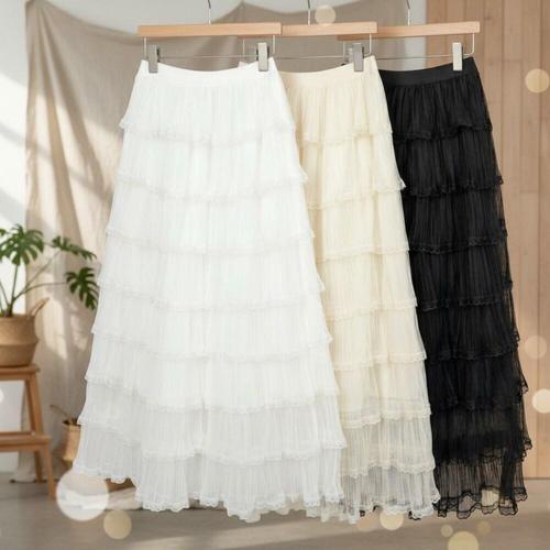 [다잇템]여성 쿨링 티어드 롱플레어 봄여름 스커트
