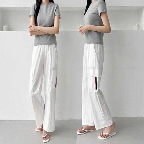 일자바지 와이드핏 쿨소재 허리밴딩 여름 카고팬츠 5 WFKBXJN