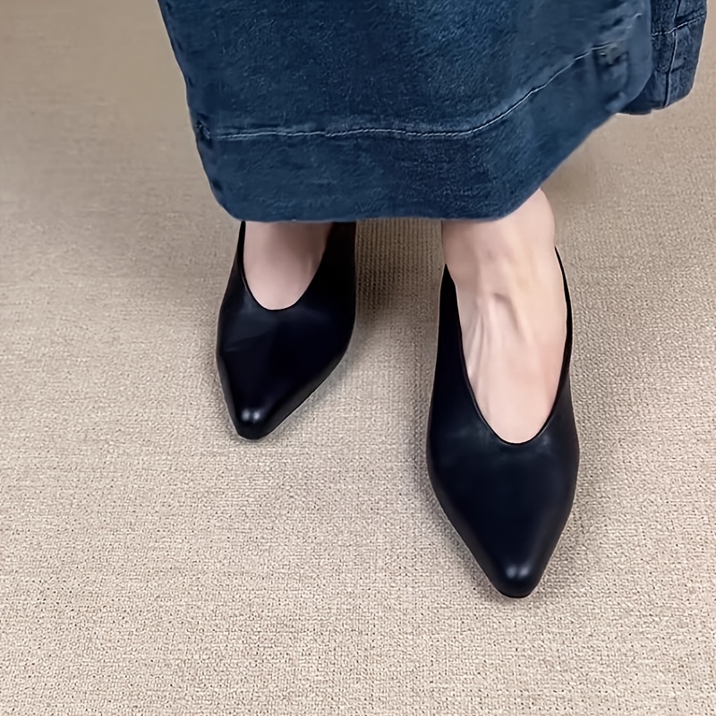 TEMU 여성용 프렌치 스타일 청키 힐 포인티드 토 로우컷 신발, 통근에 적합, 여성 신발