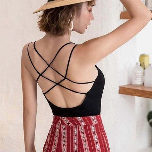 [셀러허브_여성트랜드패션]여자 이너티 슬림핏 캡내장 크로스 끈 나시