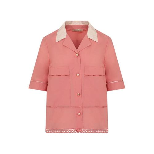 [크로커다일레이디]밑단 레이스 배색카라 블라우스 CLEMBL302_US