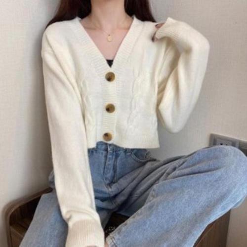[옷자락]여성용 4색 니트 크롭핏 브이넥 버튼 가디건