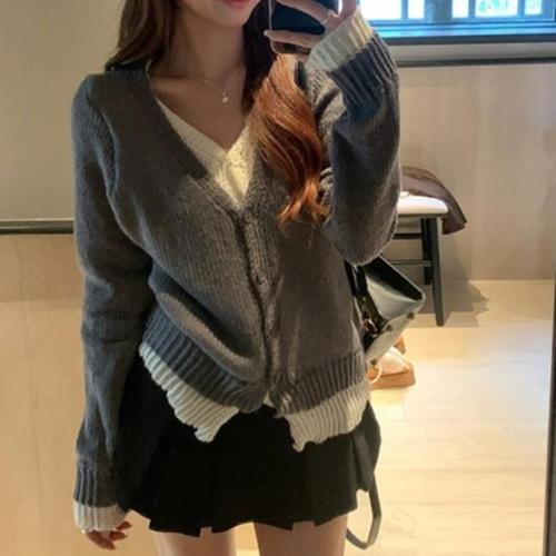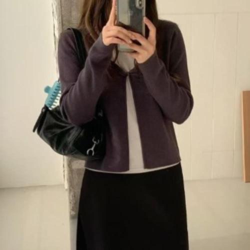 [옷자락]여성 여리여리 브이넥 크롭 니트 레이어드 짧은 기장 프리사이즈 가디건