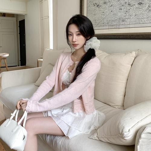 [옷자락]여성 크롭 여름 얇은 슬림핏 니트 가디건