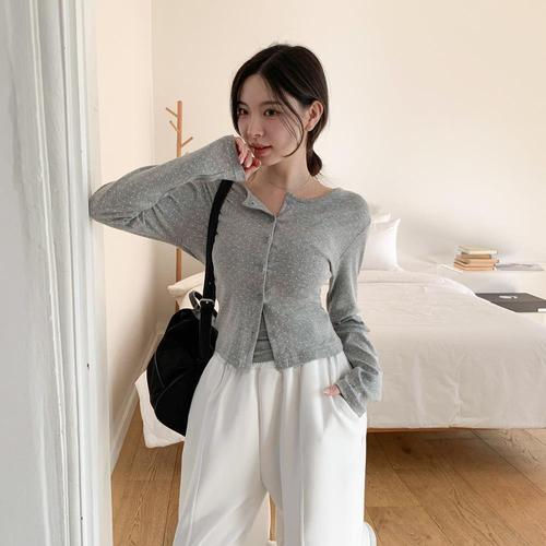 [옷자락] 여자 데일리룩 캐주얼 여리핏 크롭 라운드 가디건