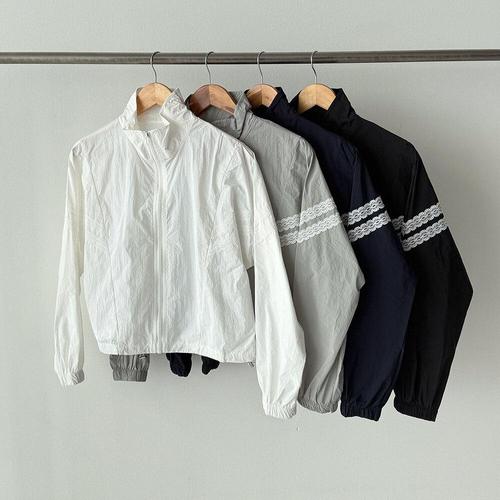 [옷자락]여성 레이스 크롭 스트링 방풍 자켓 스포티 바람막이