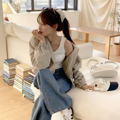 젤루나 크롭 경량 바람막이 집업 점퍼 OU-02
