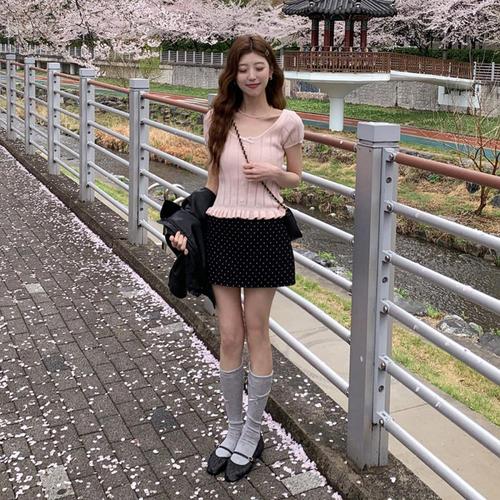 리본 반팔 반팔 니트 가디건 여름 귀여운룩 니트 세미크롭 러블리 원픽