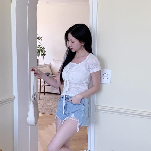 여름 반팔가디건 크롭티