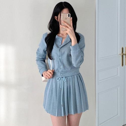 [옷자락]여자 크롭 라운드 여리 가디건 플리츠 테니스치마 세트