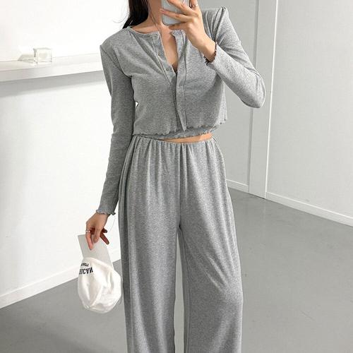 [옷자락]여자 쓰리피스 날라리 크롭 가디건 찰랑핏 바지 세트