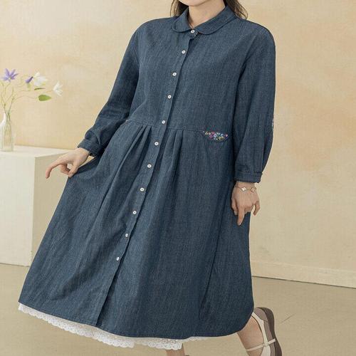 [디얼마미][디얼마미] 플라워 빵 데님 원피스 /마담 미시 중년 여성 빅사이즈 40대 50대