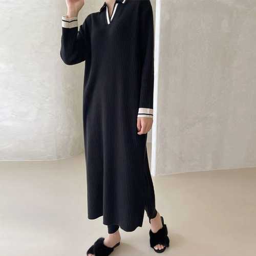 [벨리시앙]벨리시앙 니트 카라 롱 원피스 OP3215