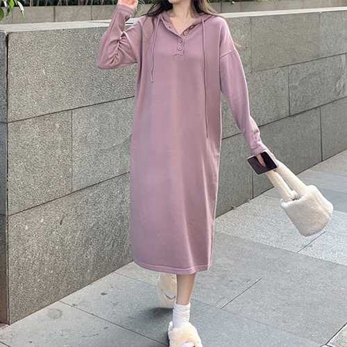 슈팅스타 / 루즈핏 캐주얼 후드 롱 원피스 713258