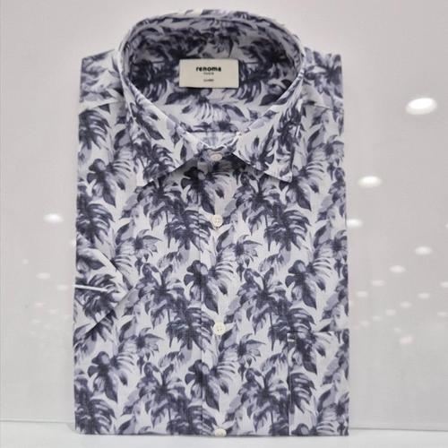 [레노마셔츠]반소매/일반핏/잉크페인팅 리프 프린트 여름 반소매셔츠 RPUSG1278 GY_US
