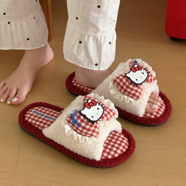 산리오 리본 슬리퍼 실내화 헬로키티 시나모롤 쿠로미 마이멜로디 가을 겨울 사무실 털슬리퍼