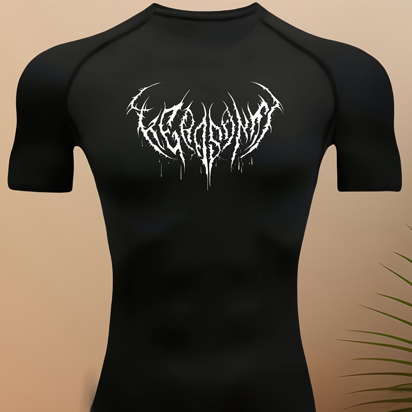 TEMU 남성용 숏 컴프레션 티셔츠, 고딕 스타일 프린트 장식, 피트니스 의류, 통기성 원단, 피트니스 매니아 전용, 남편 선물