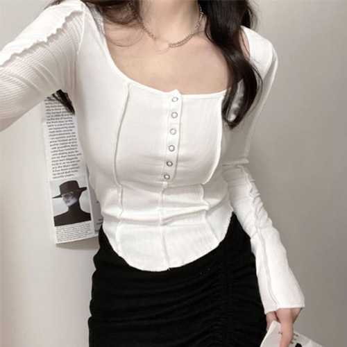 슈팅스타 / 슬림 타이트 스퀘어넥 홀더넥 크롭 숏 긴팔티