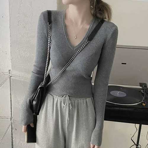 슈팅스타 / 슬림 타이트 딥브이넥 골지 베이직 이너 긴팔티