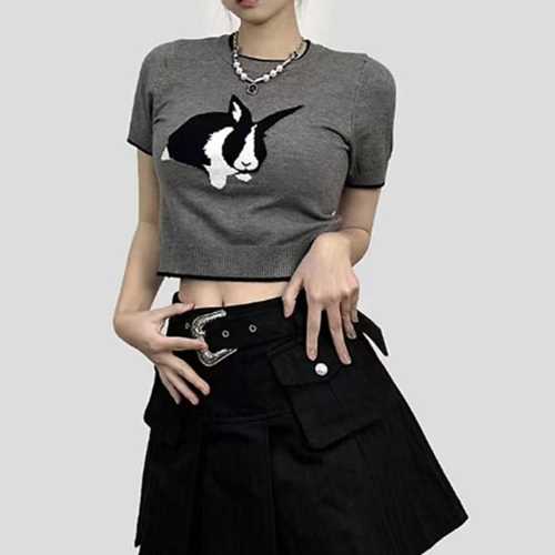 슈팅스타 / 캐주얼 라운드넥 슬림 타이트 토끼 크롭 숏 반소매티
