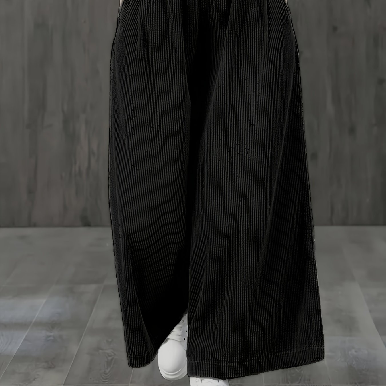TEMU 여성용 심플 캐주얼 패션 하이웨이스트 텍스처 와이드 레그 팬츠