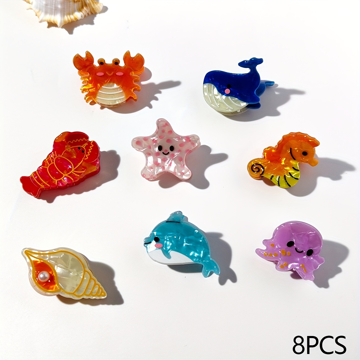 TEMU 8개 오션 크리에처 헤어 클립 세트: 돌고래, 해마, , 랍스터, 고래 모양 여성용 여름 비치 휴가 헤어스타일 간편 액세서리