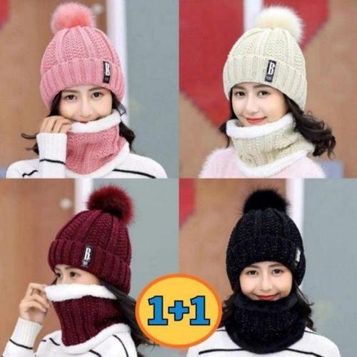 캐주얼 여자 신상 후드 니트 겨울 방한 털모자 머플러 WFJ6YXW