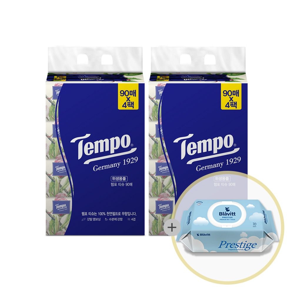 미용티슈 템포 천연펄프 소프트티슈 4겹 90매 1팩(총 4EA)