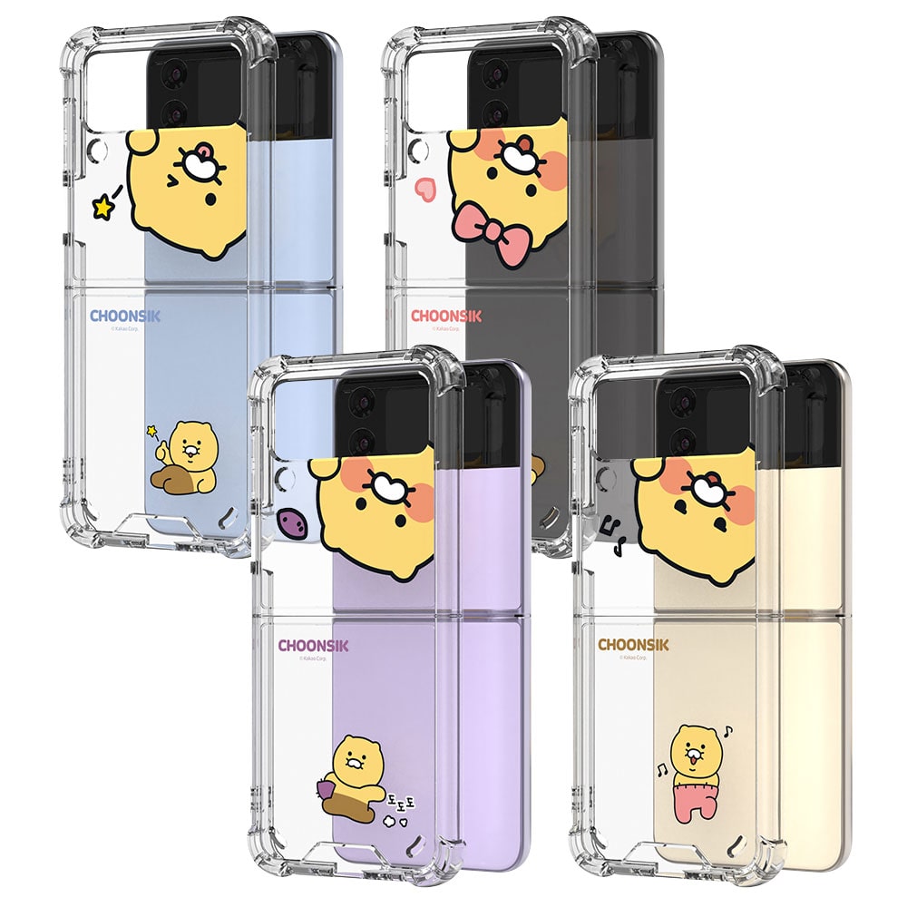 핸드폰 카카오 춘식이 빼꼼 투명 방탄 강화 갤럭시Z플립4 제트플립3 케이스