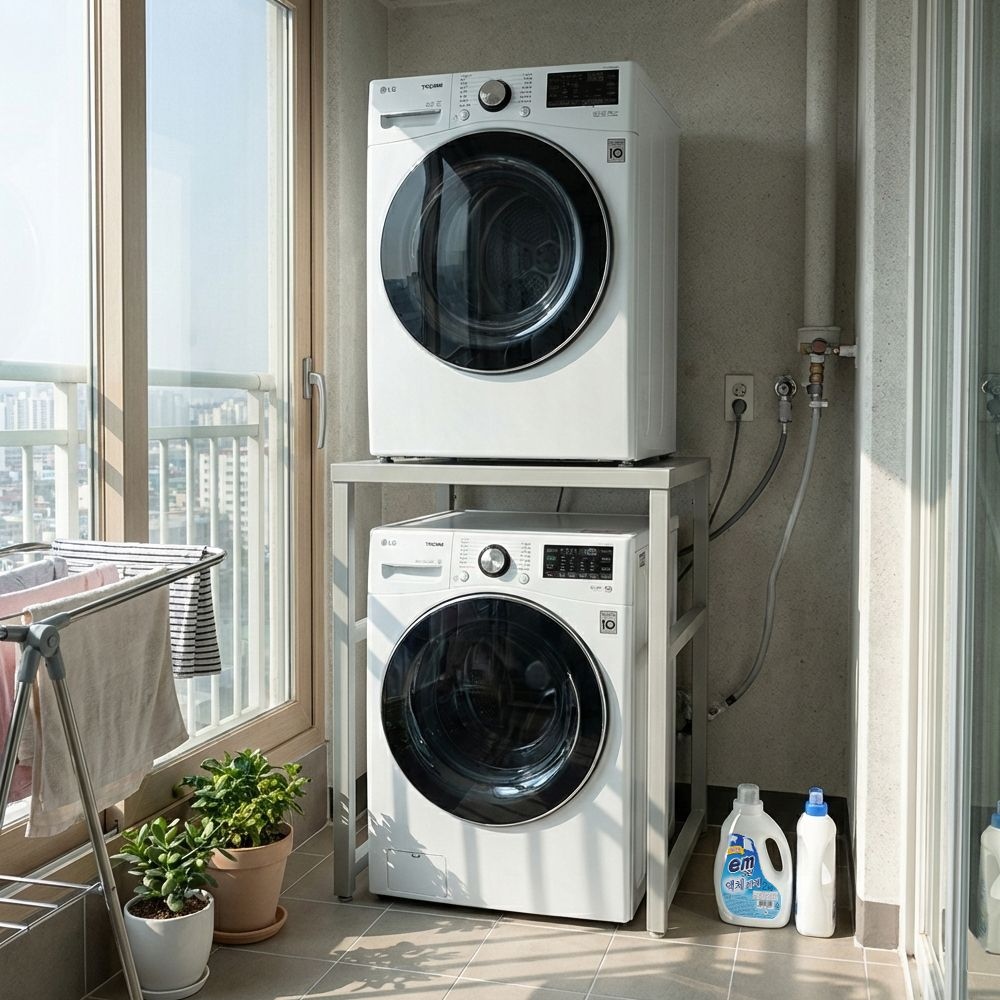 드럼 통돌이 세탁기 선반 세탁실 건조기 수납장 틈새 세탁기장 다용도실 베란다 정리