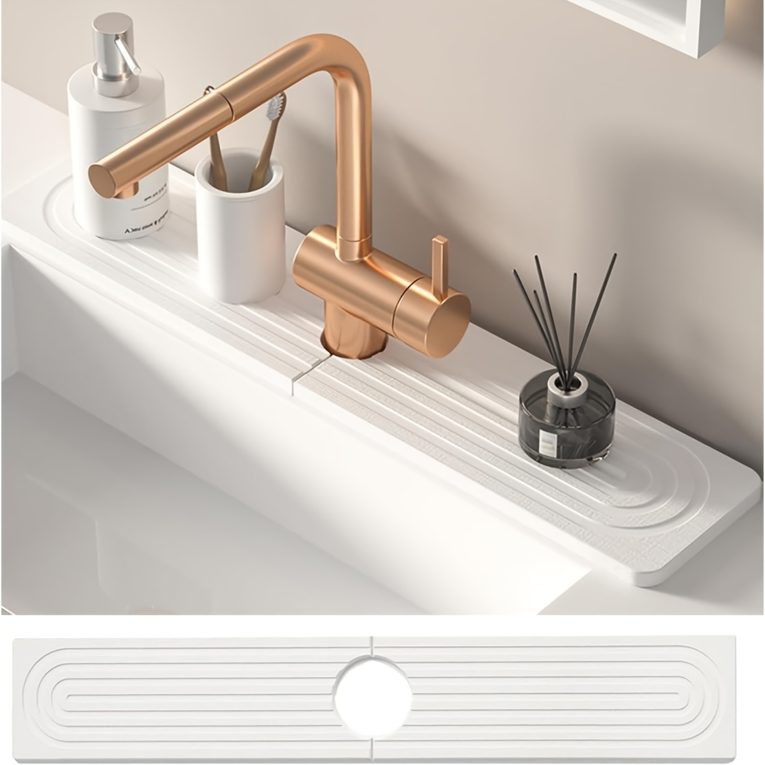 TEMU 주방 싱크대용 스톤 매트 2개 세트, 사포 포함, 속건성 규조토 싱크대 튀김 가드, 스톤 건조 싱크대 보호대, 배수구가 있는 미끄럼 방지 흡수성 스톤 트레이, 주방 욕실 카운터용 23.6인치