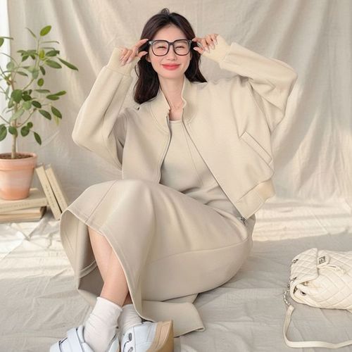 [옷자락] 여자 캐주얼 트레이닝 투피스 루즈핏 원피스 세트
