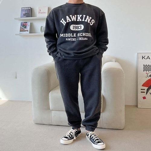 [셀럽하우스]남자 HRWF9376 겨울 얇은 기모 트레이닝복세트 맨투맨 조거팬츠
