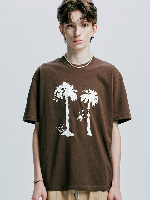 [에스에스와이] 팜 트리 & 아일렛 체인 자수 티셔츠 브라운