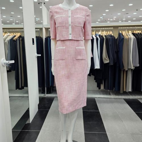 애비뉴투지 엄마옷 코코 트위드 봄 가을 가디건 일체형 플리츠 원피스 K02309
