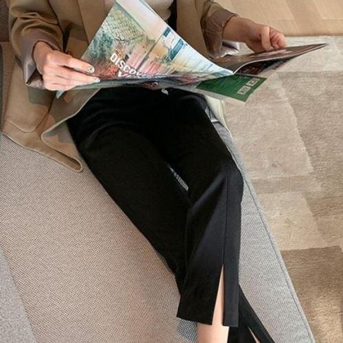 [옷자락] 여성 일상용 스판 슬림핏 밑단 트임 세미 부츠컷 슬랙스