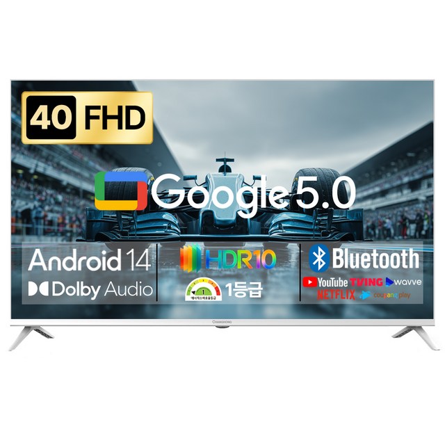 [더함]CHIQ 스마트 구글 5.0OS안드로이드14 FHD TV 40인치(화이트)+이동형스탠드G404QW-5.0삼텐바이미