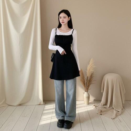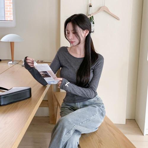 [옷자락]여자 데이트룩 리본 워머 긴팔 티셔츠