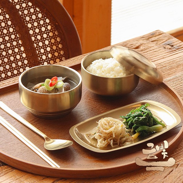 금빛-티타늄 이중 합식기, 밥그릇 국그릇 예단 반상기 공기 그릇 세트