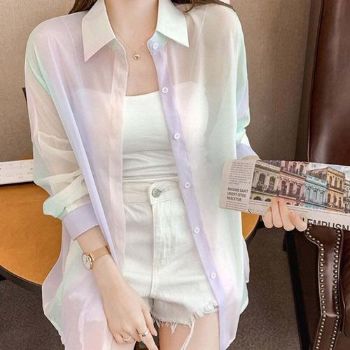 루즈핏 긴팔 파스텔톤 브이넥 가디건 시스루 여름 얇은 니트 원픽