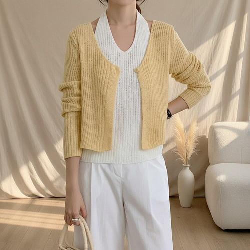 [신상오픈런]여성 봄 홀터넥 골지 나시 원버튼 파스텔 벚꽃 스타일 가디건