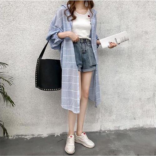 원피스 후드 롱셔츠 긴팔 시원한 체크 여자 롱남방 WFKBX4A