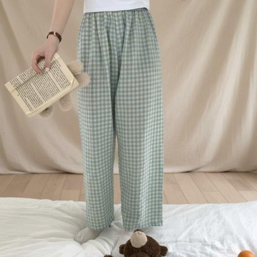 [옷자락]여성 밴딩 체크 패턴 와이드 사계절 파자마 바지
