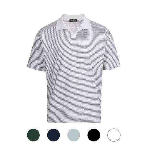 갤러리아_[파파브로] 남성 5컬러 스트라이프 오픈넥 반팔카라티 SO-KAH-STR