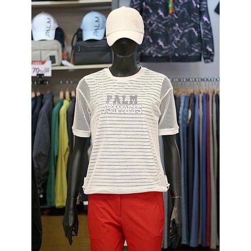 [팜스프링스]세이브존03 여성 골프 봄 여름 시스루 배색 라운드 반팔 티셔츠 YASTRL252266Y