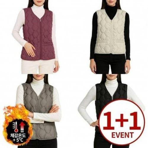 [셀러허브_여성트랜드패션]여성 이너 조끼 방한 겨울 단체복 등산 골프 패딩 캠핑 경량조끼 1+1 V넥 베스..