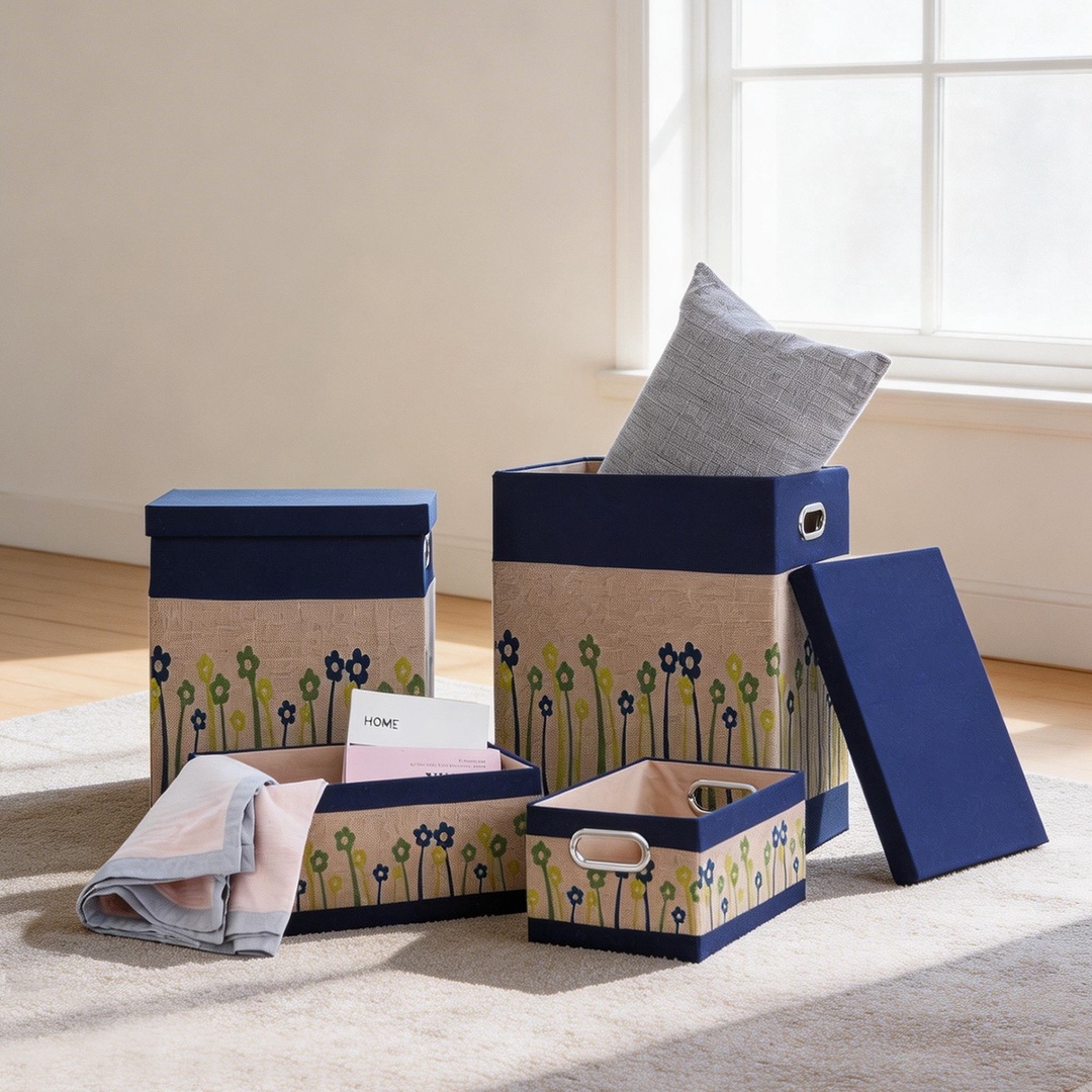 [리퍼] 플라워 사각 패브릭 바스켓 리빙박스 4종세트