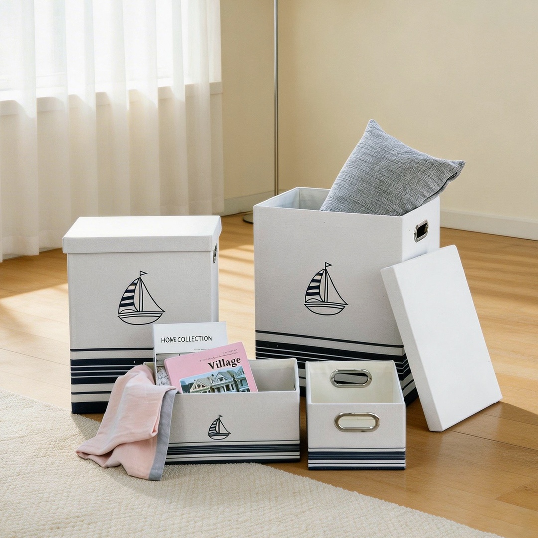[리퍼] 마린 사각/원형 패브릭 수납 바스켓 리빙박스 4종세트
