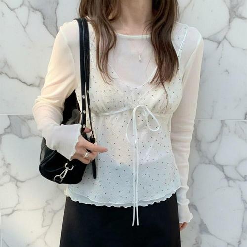 [미라클세븐]여성용 도트 패턴 나시탑 스타일
