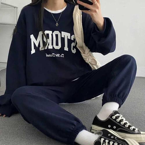 캠핑 등산 편한 츄리닝 세트 레터링 맨투맨 조거 팬츠 WFJJFQN